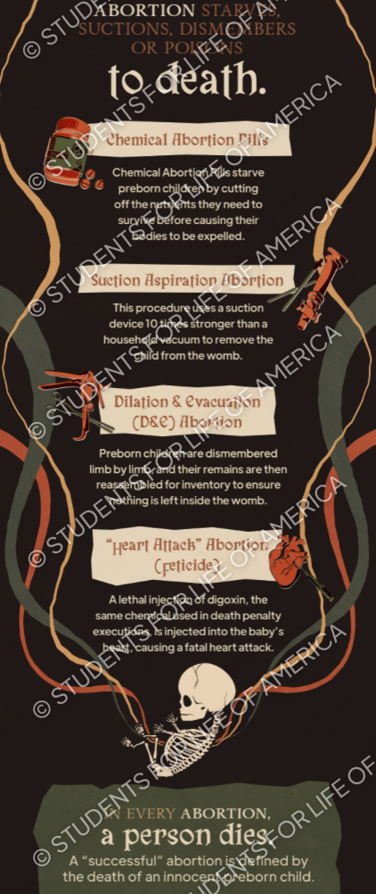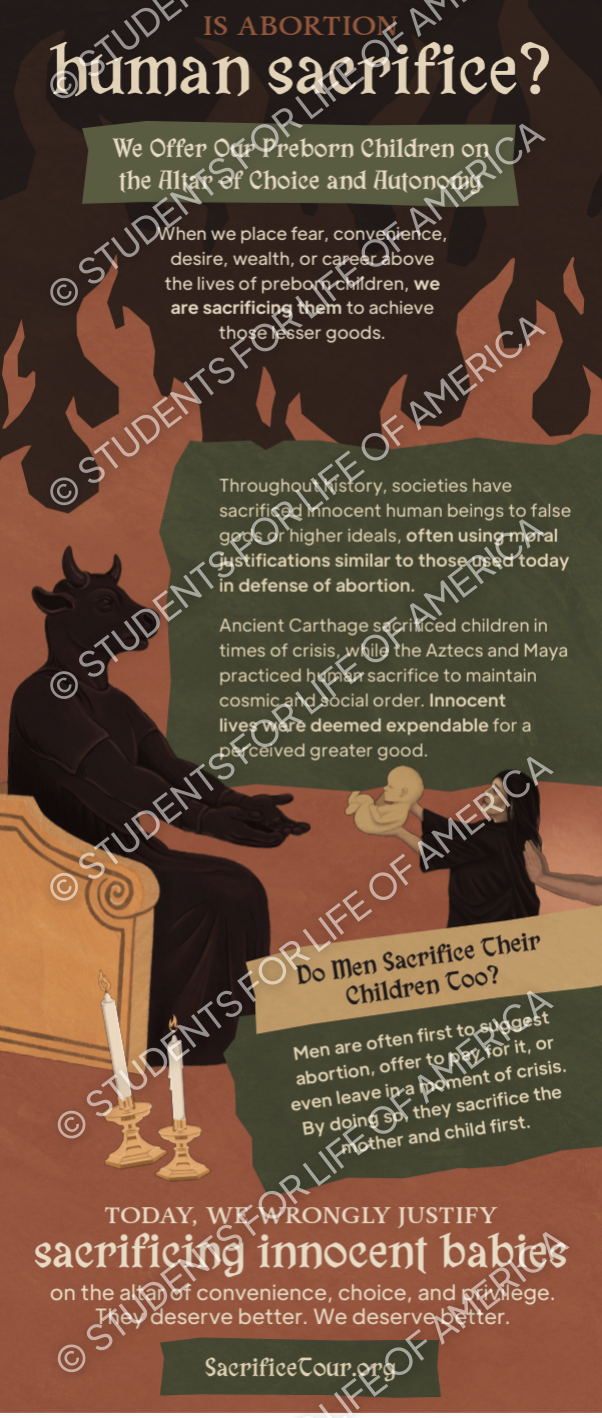 For the Spring 2026 Semester, SFLA is excited to present our newest National Campus Tour, “Abortion is Human Sacrifice”.